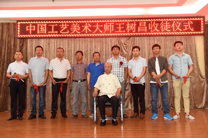王樹昌,曲陽縣內(nèi)河人,生于1946年12月。中國工藝美術大師,中國石雕藝術大師,河北新聞網(wǎng)訊(郭英焜、韓瀚、徐華)5月28日,中國工藝美術大師、曲陽藝華雕塑有限公司董事長王樹昌喜收閆現(xiàn)中、張志棟、張志勛、劉德開、劉曉雷、王大朋、陳佐偉7名高徒。 收徒儀式由中國工藝美術學會副理事長黃寶慶主持。中國工藝美術大師張汝財、劉立忠、金阿山、付國順、楊國政、郭書榮、劉同保,雕塑理論家陳培一等出席收徒儀式。 收徒儀式上,7名徒弟向王樹昌行鞠躬禮,呈拜師帖;王樹昌向7名徒弟贈送雕刻工具。他說 ,50年前,他師從盧進橋大師學習雕塑技藝,今天,他收7名徒弟就是傳承工匠精神,把曲陽石雕技藝傳承下去。 王樹昌1966年開始系統(tǒng)學習牙雕、石雕、木雕技藝,后從事玉雕創(chuàng)作,2012年被授予中國工藝美術大師稱號。其作品《坐山觀音》榮獲輕工業(yè)部“中國工藝美術品百花獎”,曾在中南海紫光閣陳設;《坐觀音》獲全國玉石雕精品金獎;《彌勒佛》在2009中國玉石雕精品博覽會上獲銀獎;《戲龍觀音》在2010中國玉石雕精品博覽會上獲銀獎。 |